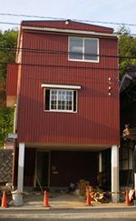 建築家のアトリエ兼自宅。両親世帯のための1階を段差のない完全バリアフリー、子供夫婦と孫のための2階を間仕切りのないスキップフロアとすることで、それぞれの世帯年齢に応じた生活を楽しめる間取りとなっています。一方、各世帯のプライバシーを守りながら、完全に区切らず繋がりを持たせることで、“大きな家族”を実感できる空間構成も実現しています。また、建物の配置を工夫し、外部空間と内部空間に繋がりをもたせることで、空間が視覚的に“広く見え”、敷地の隅々まで“広く住める”ことも特徴です。